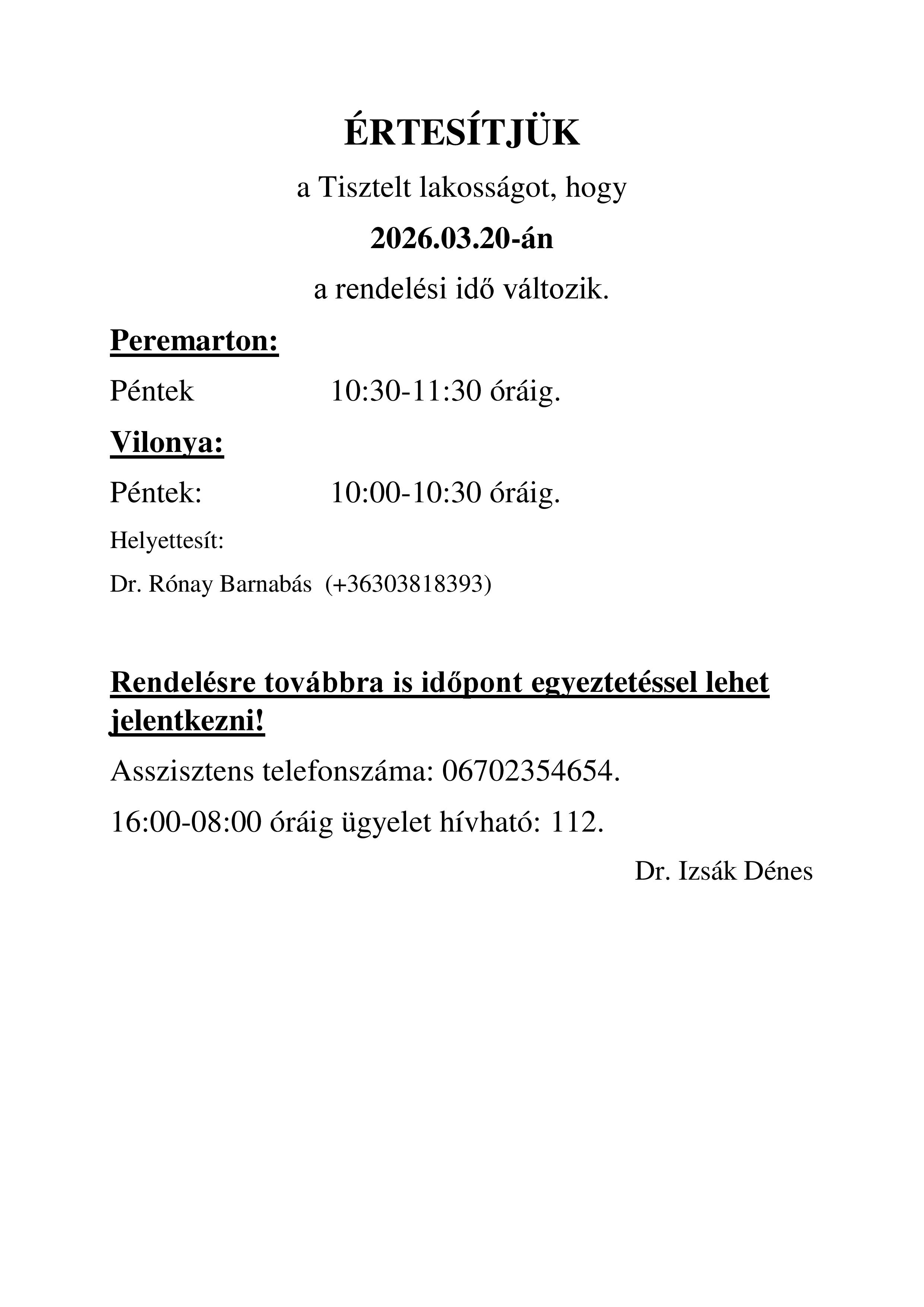 Izsák Dénes helyettesítés
